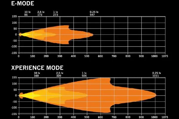 W trybie Xperience Mode lampa emituje pełną moc 12 000 lumenów, oferując niesamowitą widoczność i bezpieczeństwo na trasie. W E-Mode spełnia wymagania homologacji ECE R148/R149 (ref. 20) – w pełni legalna do jazdy po drogach publicznych w Polsce i całej UE.