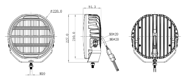 Te 220-milimetrowe światła są wyposażone w dynamiczne światło pozycyjne w kolorze białym i pomarańczowym.