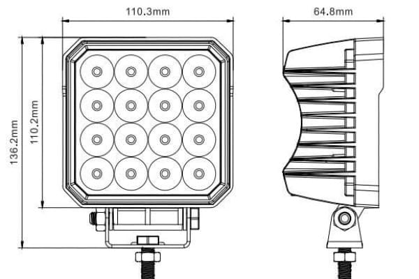 Lampa robocza Ostrzegawcza Led ze światłem stroboskopowym (R65) SKYLED RED LINE kwadratowa 36W,10-32V, 3420 Lm, IP67 (światło rozproszone) ADR