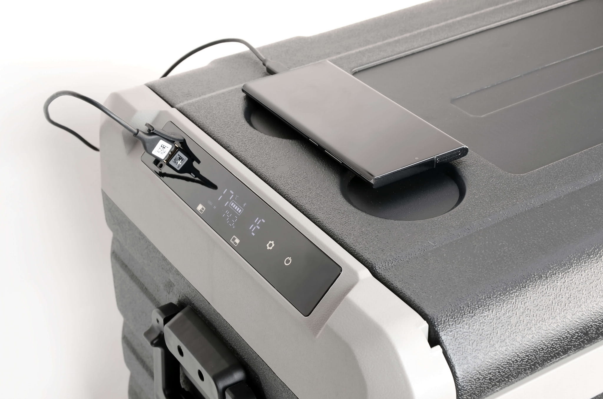 Przenośna lodówko-zamrażarka sprężarkowa VIGO COOL V35TR. Idealna na wyjazdy, podróże, czy do pracy jako kierowca. Wysoka wydajność chłodzenia zapewnia dłuższe utrzymanie świeżości żywności i napojów, niezależnie od warunków atmosferycznych na zewnątrz.
