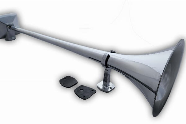 Okrągły sygnał pneumatyczny z aluminium wykończonego chromem. Wyprodukowany przez firmę HADLEY. Przeznaczony do pojazdów z instalacją pneumatyczną. Sygnały Hadley posiadają niespotykany design i indywidualny dźwięk, dlatego są rozpoznawane na całym świecie. Wspornik pod sygnał w zestawie.